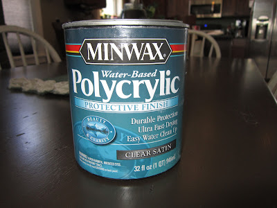 After the table and chairs were stained, I applied a couple of coats of water based Polycrylic Protective Finish in Clear Satin